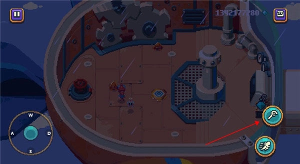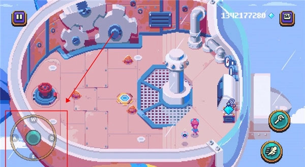 3、游戏内左侧轮盘控制角色的前后左右移动。