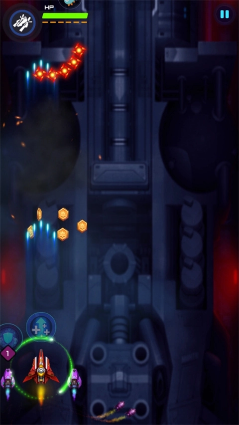 1.玩家将驾驶专属战斗机开启宇宙穿梭之旅,与各类敌机展开战斗。