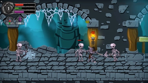 《守望者编年史》(Watcher Chronicles)是Third Sphere Game Studios开发的2D动作角色扮演游戏(ARPG),背景设定在地狱世界,集合了非线性探索、高难度战斗与多样的角色养成机制。游戏采用“恶魔城式”地图架构,玩家能够自由探寻炼狱世界的各个角落,发掘隐藏密室、神秘珍宝以及足以扭转战局的战利品。地图里设有铁匠铺、休憩点、升降梯等功能设施,不过血瓶的数量是有限的,玩家需要谨慎安排资源的使用。