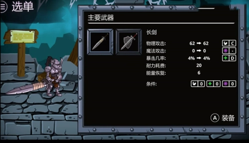 游戏角色的装备配置包含铠甲、主武器、辅助武器各一个专属槽位,另有三个饰品槽位可供使用。装备的选择十分丰富,涵盖双剑、剑盾、大剑、大锤、大斧、武士刀、长矛等多种类型;获取途径也颇为多样,既可以从宝箱中搜寻获得,也能在商店内直接购买。不同武器在伤害数值、体力消耗以及连招组合上均存在独特差异。