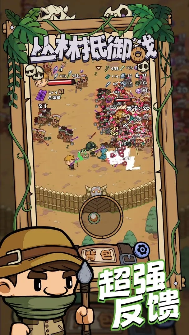 《丛林抵御战测试版》是一款充满趣味的roguelike割草生存游戏,提供多种职业供玩家自由挑选。玩家可灵活操控角色,助力更流畅地开展战斗;还能配备各类强力武器以击溃敌人,同时也能自由招募角色,畅享精彩的割草战斗冒险,并制作各种强力道具。