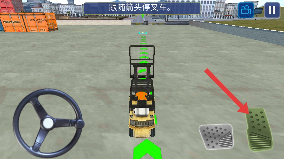 1、首先要熟悉操作方式,左侧的方向盘用于控制方向,右侧的踏板负责操控前进和后退,转动方向盘时动作要缓慢以调整方向,平稳地朝着目标点行驶。