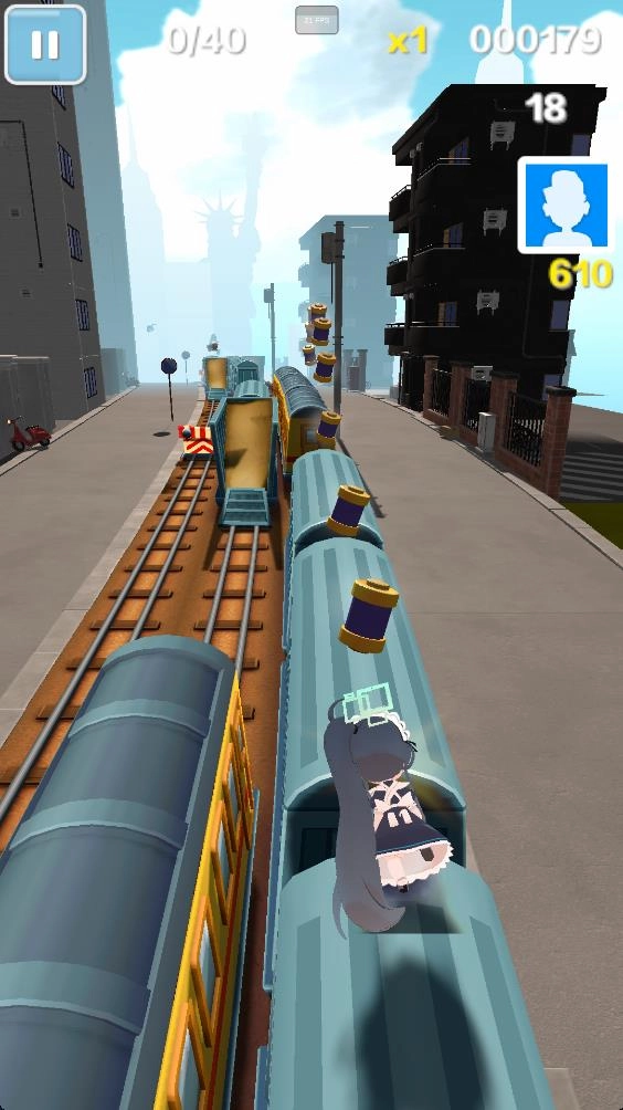 3、正式开始后,左右滑动屏幕可切换轨道,向上滑动为跳跃动作,向下滑动则是翻滚动作。