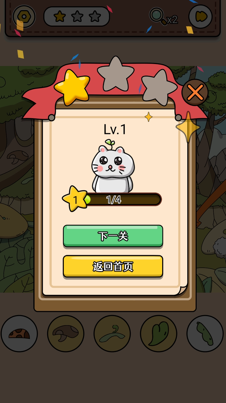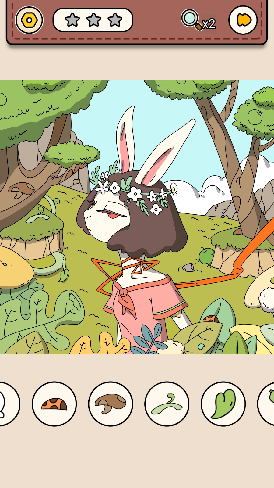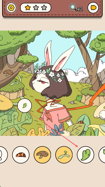 1、进入关卡后,留意界面下方显示的待寻找物品图标,比如呈现植物枝叶形态的图标。
