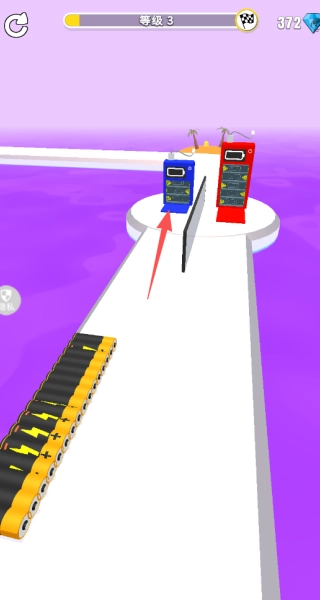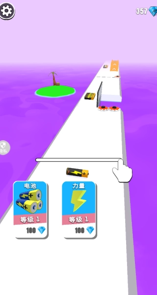 1、启动游戏,通过滑动屏幕控制角色前进,在赛道上尽可能多地收集电池。