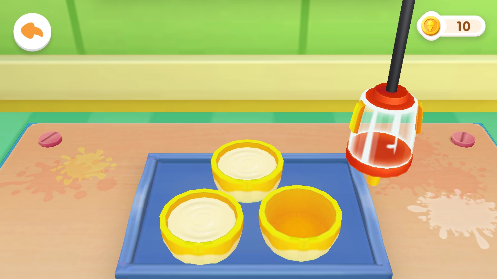 3、持续进行操作,在完成原料的添加与调配工作后,启动相应的制作流程,从而制作出满足要求的雪糕,最终达成关卡目标。