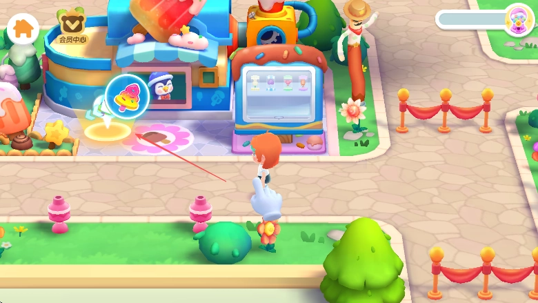 1、启动游戏后,操控角色前往雪糕店,点击店内带有光圈标识的位置,即可进入雪糕制作的环节。