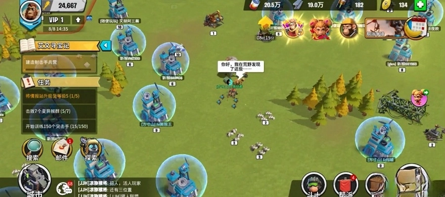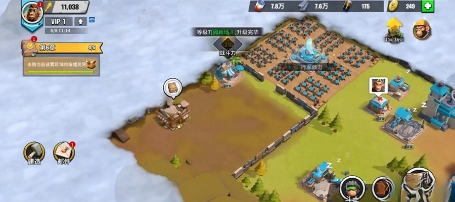 阶段目标1:基础设施建设 猴猴们前期跟着章节任务推进即可,完成章节内容后解锁城内所有地块,并搭建好基础建筑(如基地、兵营、医院、研究所等)。只有把基础设施建设落实到位,后续发展才能稳步推进!