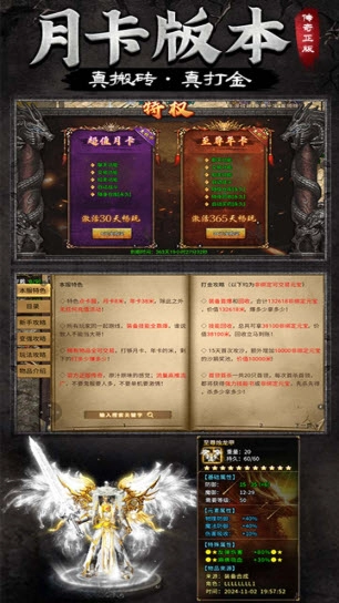 龙腾传奇专注打造绿色优质服务器,采用月卡制运营模式。除月卡费用外,游戏内不存在任何其他付费项目。每日在线玩家数量高达上万,实现真正的千人同屏盛况,超高人气确保你随时都能找到组队伙伴。游戏支持自由交易搬砖,玩家通过游戏获得的物品均可自由出售,对散人玩家极为友好。