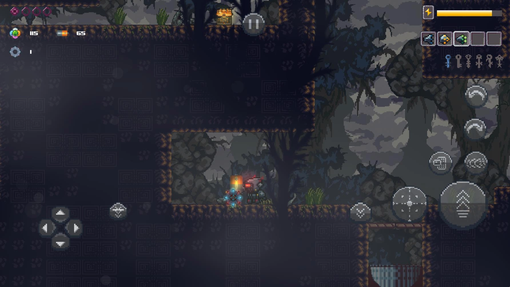 4、操控小机器人持续向前移动以收集各类物品,击败敌人后会掉落不同的道具,这些道具能够补充你的道具储备。