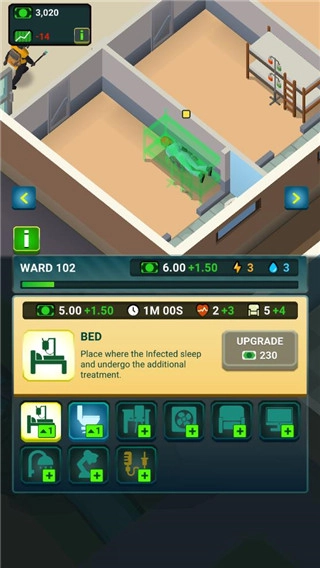 与常规治疗普通病人的经营类游戏不同,本作的玩法有着独特设定:若在治疗过程中未能给予僵尸足够关注——比如忽视情绪安抚、病房舒适度不足,或是缺乏可供消遣的项目,这些特殊“患者”很可能突然暴走,咬伤医务人员,导致高价雇佣的员工直接“下线”。