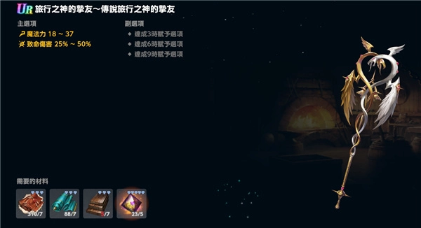 4、魔法类角色:如果有专属武器就优先佩戴专属武器,其养成思路和物理角色大致相同,重点堆叠爆伤与魔法力属性即可;武器方面推荐选择旅行者的挚友,手套则建议搭配背叛者的束缚。