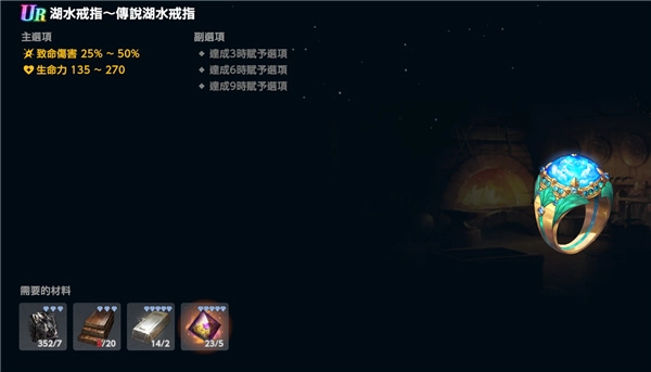 6、防御角色选武器时,主要看自身属性是魔法还是物理,用锻造剩下的UR2就行,不用特意去锻造;手部和戒指饰品,副词条选生命属性的,PVP就用暴击饰品,PVE则选爆伤饰品,要求不高,锻造出什么就带什么,前期不用追求太高品质,通常有UR3就已经很好了。