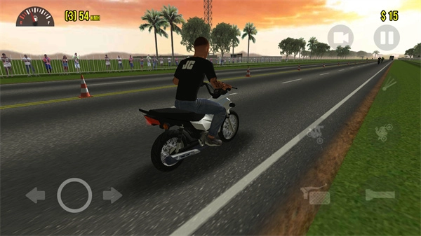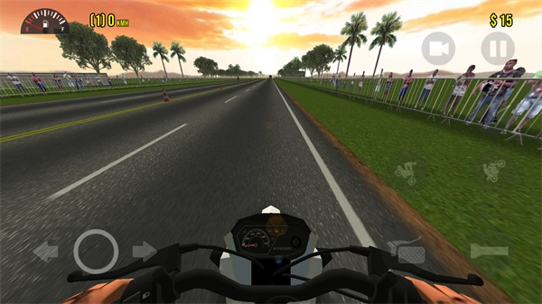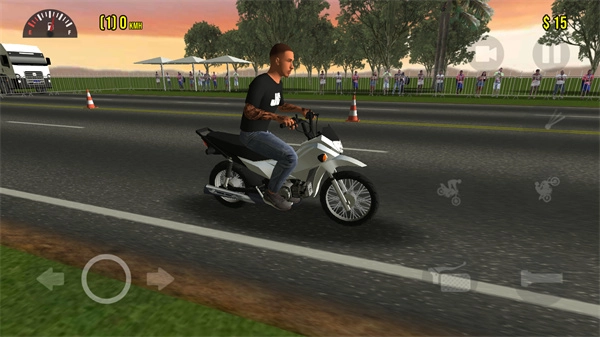 首先点击右侧的第一个图标,摩托车头就会直接翘起,接着持续加速,就能让它一直向前行驶。