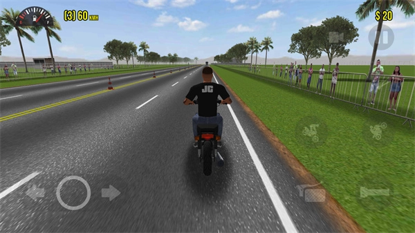 进入游戏后,初始视角为第三人称,玩家可立即驾驶摩托车自由行驶。