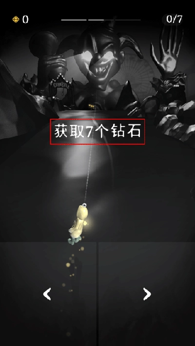 3、首个关卡的任务是收集7颗钻石,现在就通过左右摇摆去触碰那些闪烁的钻石吧。