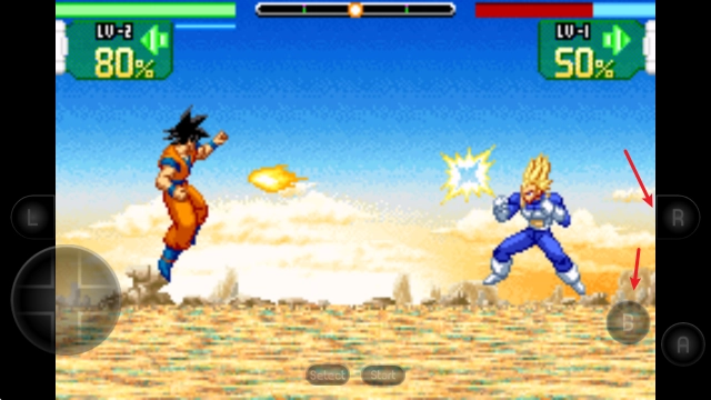 6、按住R+A或者R+B可以消耗气来发动气功波。