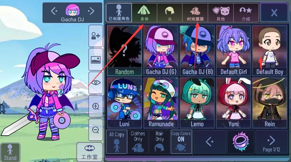 3、第一步,我们先创建一个自己心仪的角色,你可以对角色的身体、头部、服装等各部分进行调整修改。