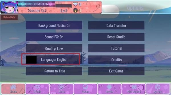 1、启动游戏,进入初始界面后,点击右下方的language语言按钮;