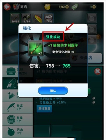 鱼竿强化成功后,其伤害值会得到提升。伤害值的高低会直接影响每次消耗鱼体力的程度,伤害越高,单次消耗的鱼体力就越多。若想成功钓获稀有大鱼,玩家需要配备伤害较高的钓具。