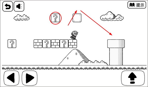 1、先跳到图中画圈的位置,接着把方块顶出来,站到方块上再跳到水管那里。