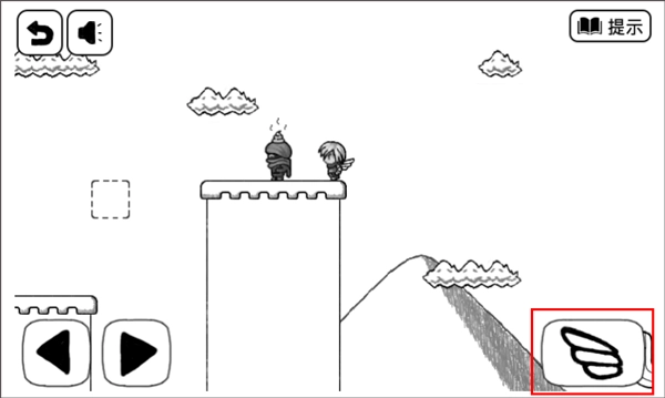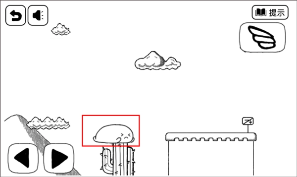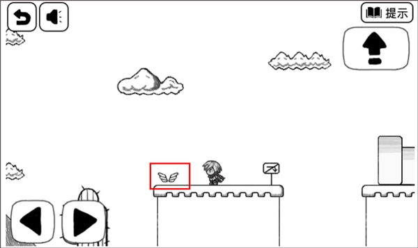 2、留意到跳跃按钮移到右上角了,点击它跳过去,拿到翅膀。