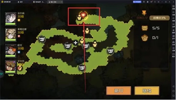 5、第三章3-1的主线关卡,要是你已经探索了右边半张地图却中途退出,再次进入关卡时若直接走进传送阵,会被传送到右边地图,这样就会卡在方框位置找不到出去的路。遇到这种情况,需要重新进入关卡,这次别进传送阵,把左边的地图也探索出来就行,如图二显示的那样,左右两边的路是连通的。
