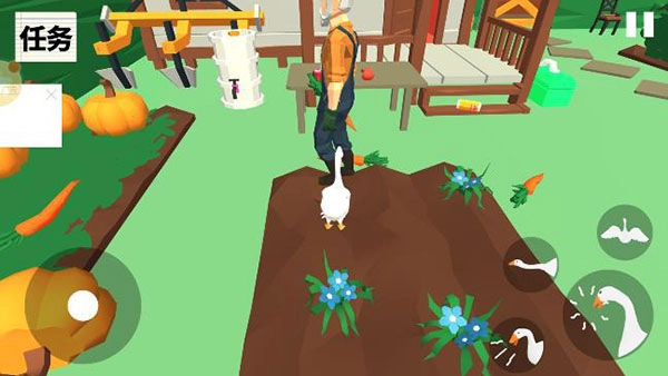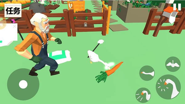 2、控制你的大鹅到处恶搞,与农场主斗智斗勇。
