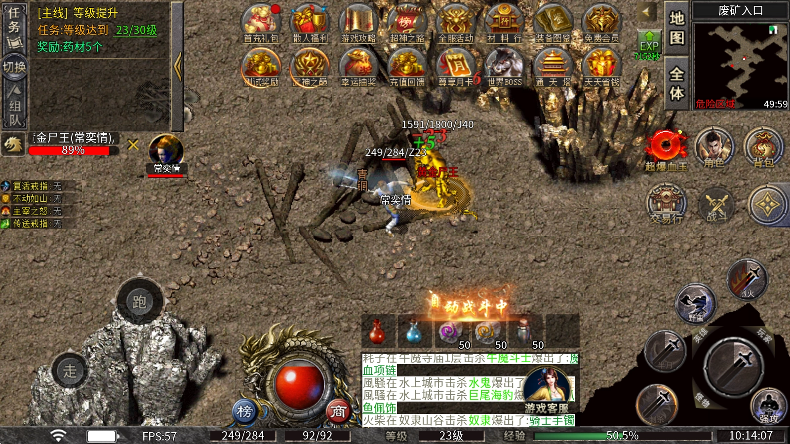 4、第一天要是高级地图扛不住,也可以去前面的地图打红名BOSS,每张地图都有,能爆出大量材料和累充点,只要打怪就能到终极。