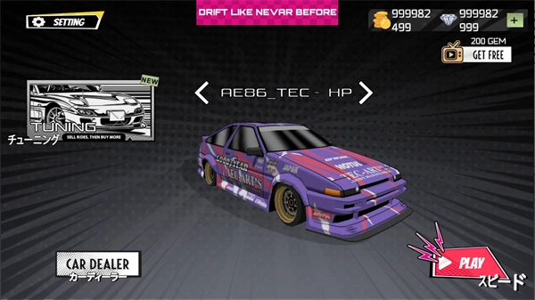5、在主界面点击车辆上方的箭头能够切换不同的汽车,花费一定数量的金币即可直接购买。