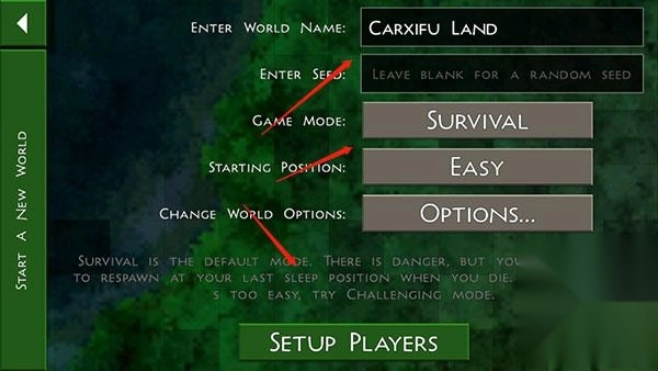 3、世界名称建议避免使用中文,直接填写数字即可;另外这个是游戏模式,相关说明在注释里。
