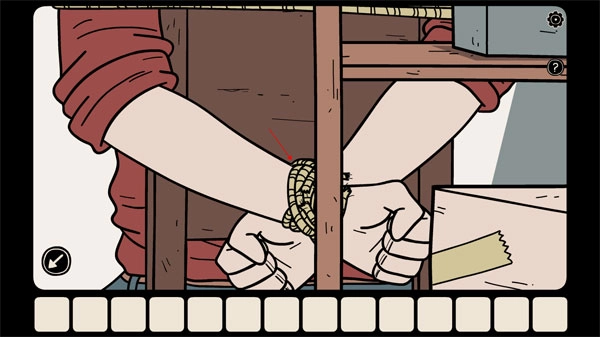 1、游戏开始时,主角处于被捆绑的状态,你需要点击主角自身,通过摩擦绳子的方式来帮他解开束缚。