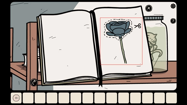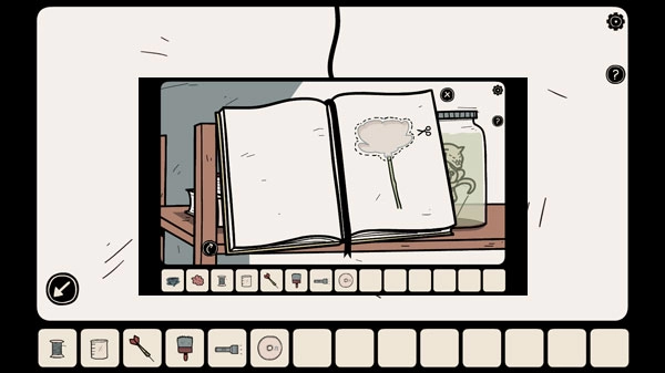 3、点击上方书架上的书时,得用剪刀把那一页剪开。
