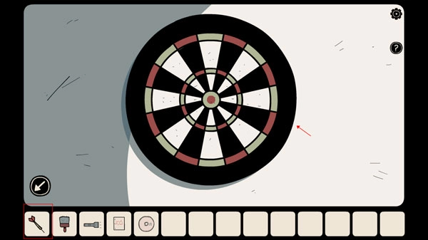 6、点击显微镜下方的柜子,获取手电筒和带有化学方程式的镜片,同时在飞镖盘处拿到飞镖。