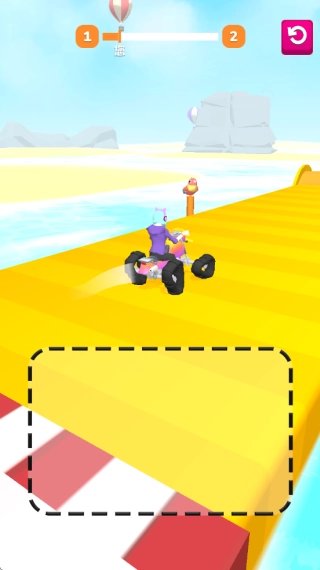 3.紧接着汽车会在平地上全力冲刺。行进途中,玩家能依据遇到的障碍物重新设计车轮的形状,这样就能更轻松地越过障碍了。