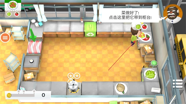 1、根据提示点击食材如生菜,制作沙拉等菜品。