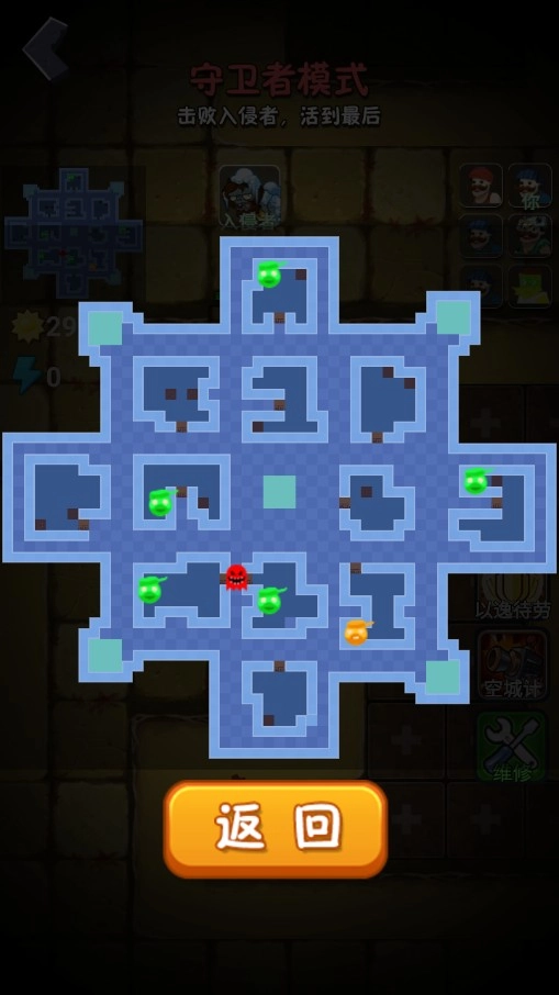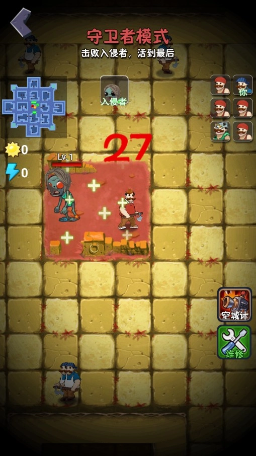 2、极具趣味性的设计,既能化身守卫者,也能扮演僵尸,体验更多精彩十足的玩法;