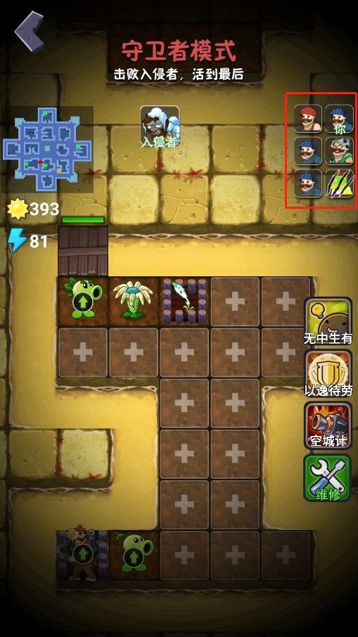 3、接着便会进入守卫者模式,玩家要击败包括僵尸在内的入侵者,并且坚持活到最后。