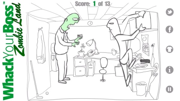 17、文件柜-员工打开一个文件柜,老板会查看文件(他会持续这一动作,直到你再次点击文件柜,届时将触发真正的击杀环节),随后员工用文件柜猛砸老板的头部,最终老板的头掉了下来。(击杀后的动画场景:员工在听音乐。)