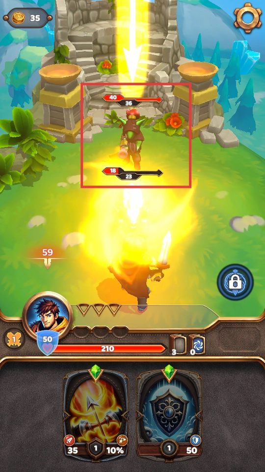 1、挑选下方的卡牌,向敌人发起进攻,增强战斗中的伤害输出。