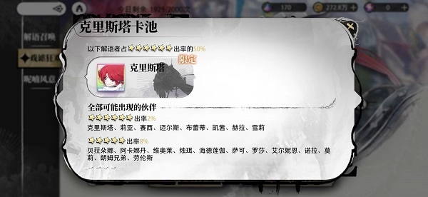 初期召唤我们可以进行获得召唤,指定六星英雄限定召唤,此种召唤指定英雄概率为50%(卡牌详情可查看),此类活动需要特殊的邂逅种子,可通过晶石获取。