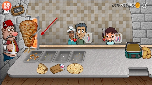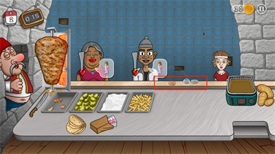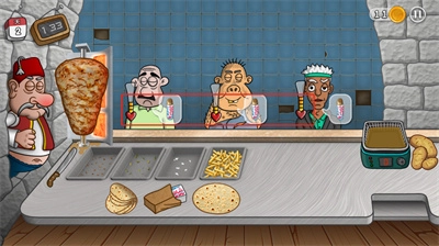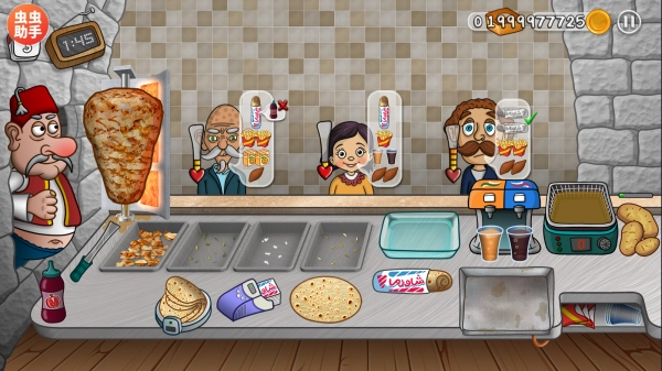 :根据顾客的口味需求制作出美味的沙威玛,可不断升级店内设施设备,还有独特的卡通动画。