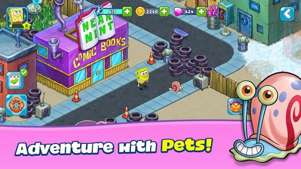 海绵宝宝果酱大冒险中文版是一款冒险游戏,游戏根据经典的动画海绵宝宝改编而来,玩家需操作主角海绵宝宝探索神秘的海底的世界,收集各种道具来建设自己的海洋世界,玩家可以通过使用金币来拓展自己的领地范围,通过种植各种各样的海底作物来进行售卖,轻松获得游戏内的金币,游戏还设计了许多的随机性事件,触发之后完成相关任务就能获得奖励。