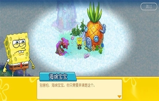 2、进入游戏剧情后,会发现海底堆积着大量果酱垃圾等待清理,你也可以选择跳过这段剧情。