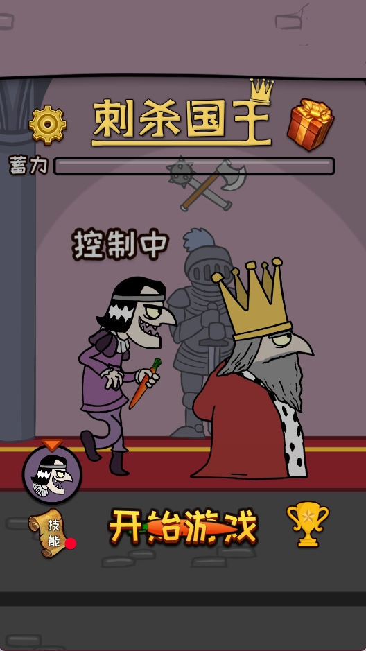 1、进入游戏后,长按屏幕蓄力,进度条满后刺杀国王