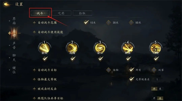 要留意自动战斗目标的设置,挂机刷怪时得注意勾选对应的类型。