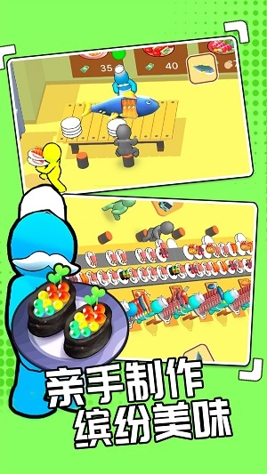 玩家们依靠自身持续的努力提升制作技能,从而创作出更多精美的寿司造型。