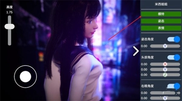 以右侧的示例人物为参照,我们能够对其肢体动作、面部神态以及穿着搭配进行调整。