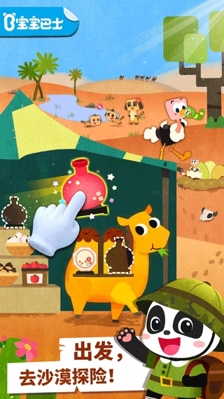 游戏中生动可爱、种类繁多的动物形象,会让孩子们沉浸在充满乐趣的动物世界里,获得满满的欢乐体验。小小冒险家,探险沙漠