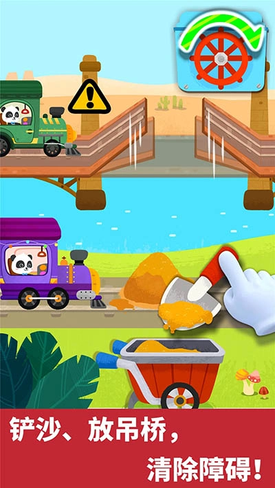 游戏里设计了好几个关卡,宝宝得动动脑筋来解决各种难题,像放下栏杆、清理铁路、修补铁轨之类的。借助这些关卡的安排,宝宝可以锻炼自己解决问题的能力。家里有孩子需要进行启蒙教育的朋友们,欢迎来我们网站!